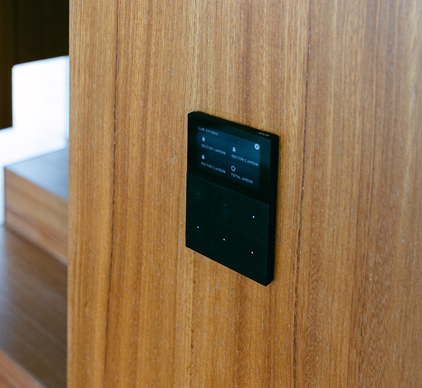 A abordagem que adotamos privilegiou a funcionalidade e segurança de toda a residência. A iluminação, segurança e toda a domótica trabalham de forma coordenada para garantir fluidez operacional em toda a casa.